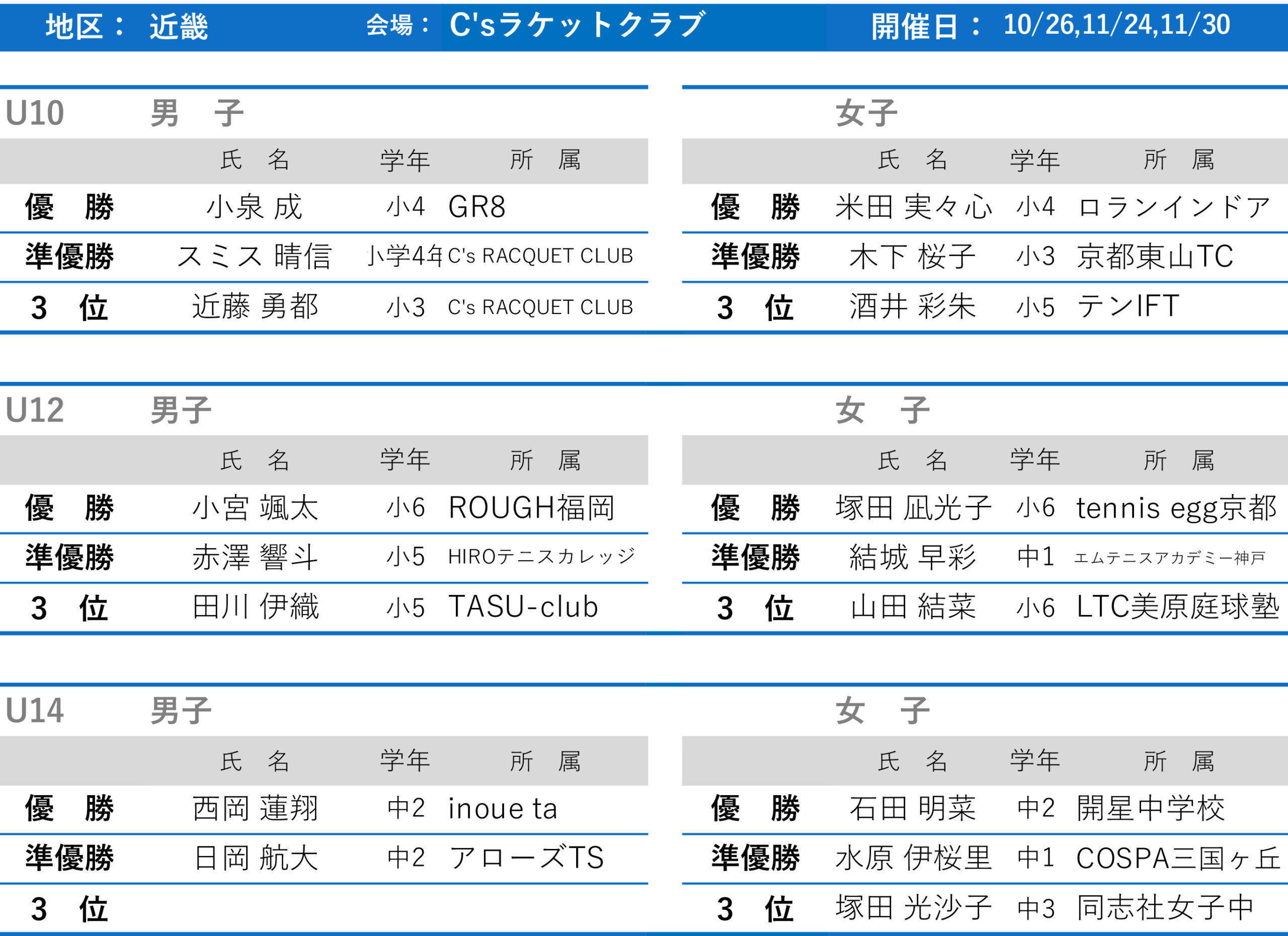 2025年度 JPTA ALL JAPAN JUNIOR TENNIS TOURNAMENT 地区大会 近畿地区/C’sラケットクラブ 結果